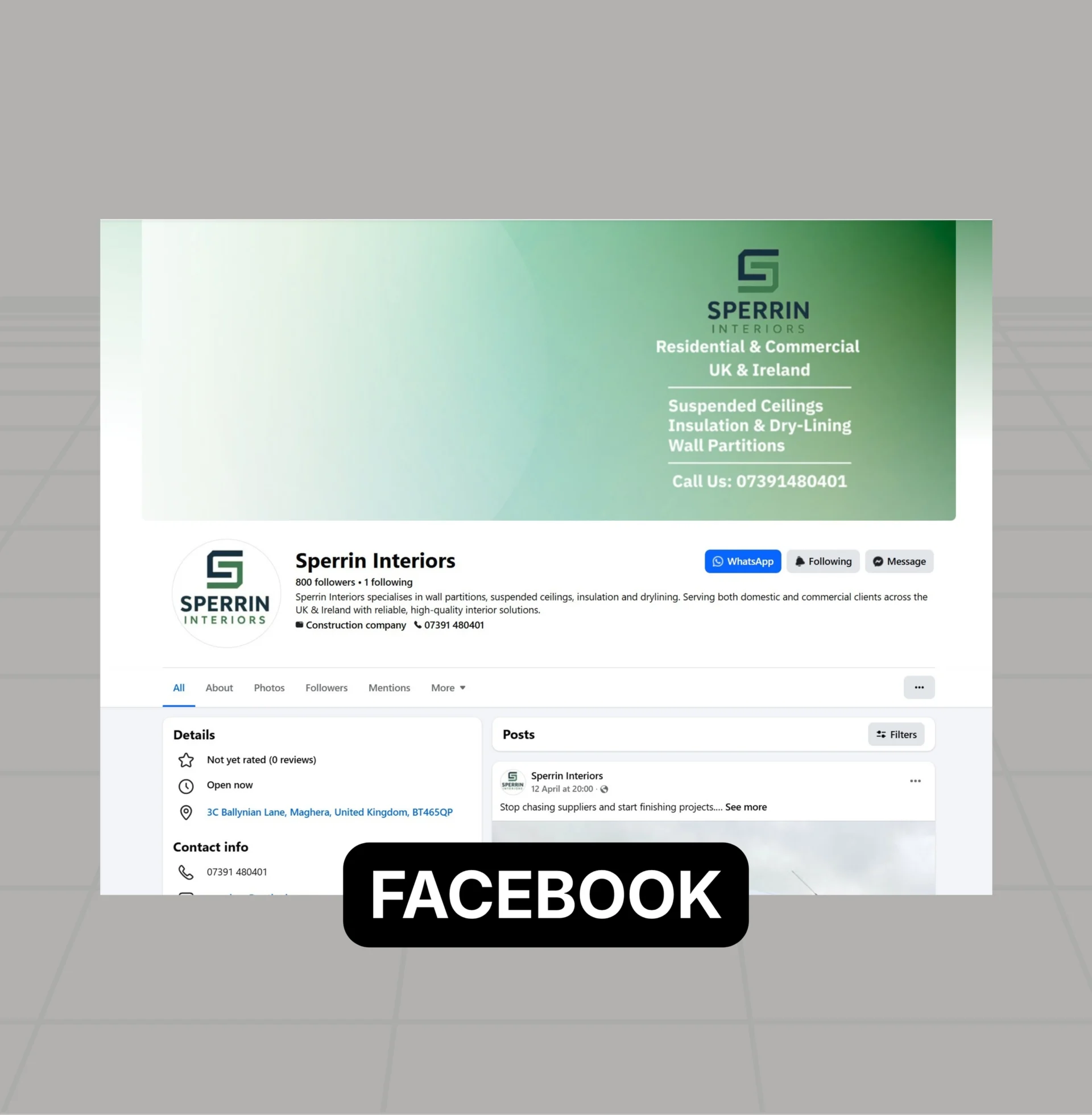 Delivered a full website design and development for Sperrin Interiors, alongside domain and email setup, transforming their online presence from Facebook-only into a credible, professional platform for contractors and clients.